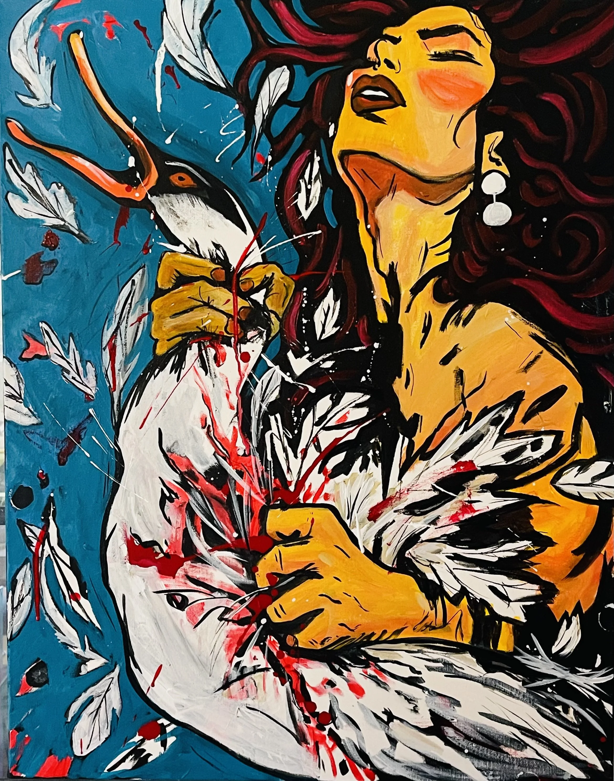 This series explores moments where grace becomes threat, vulnerability becomes strength, and myth is rewritten. Figures shift between human and animal forms, feathers scatter like memory, and bodies carry both beauty and defiance.
